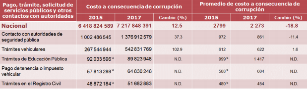 Sin embargo, volteando hacia atrás, el costo total de la corrupción en México durante el año pasado fue de 7 mil 218 millones de pesos, una cifra mayor a la que se reportó hace dos años.