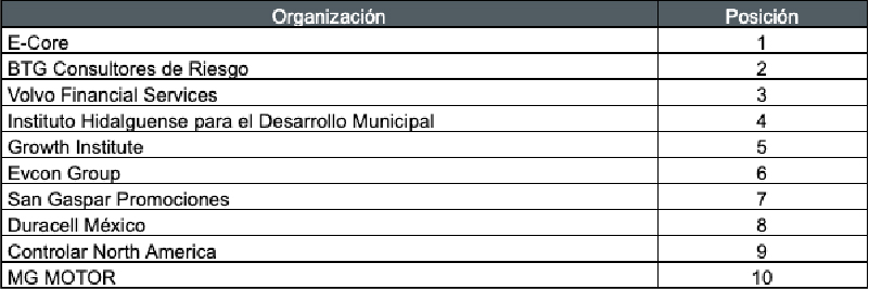 Los 10 sectores económicos con mayor representación, pertenecientes al listado de Los Mejores Lugares para Trabajar en México 2023, son: