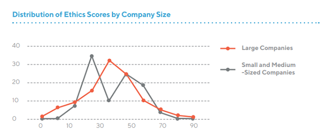 El informe se basa en más de 20,000 evaluaciones de empresas realizadas por EcoVadis desde enero de 2017 hasta junio de 2018, en 100 países y 150 industrias. El desempeño se evalúa para empresas pequeñas (26-999 empleados) y grandes (más de 1000 empleados) en una escala de cero a 100, con puntuaciones inferiores a 45 que representan riesgo medio a alto y puntuaciones inferiores a 25 que indican un riesgo muy alto. Los aspectos destacados seleccionados de la investigación de EcoVadis incluyen:
