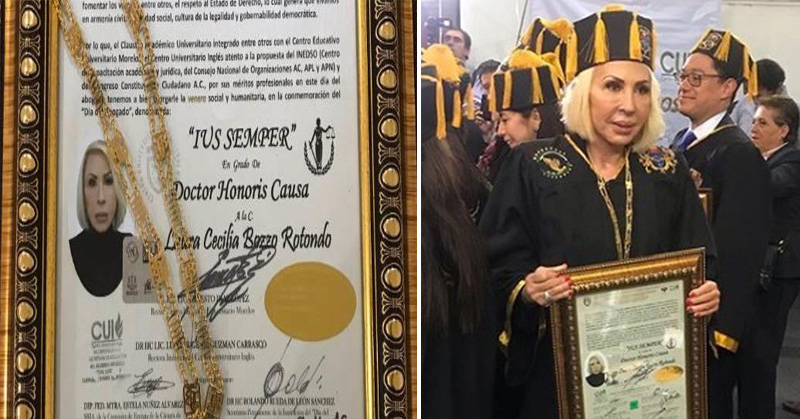 Hasta el momento quedan muchas dudas sobre el título de Laura Bozzo, y es que, además del título académico, la presentadora recibió una medalla por su “lucha en defensa de la mujer y contra la trata”.