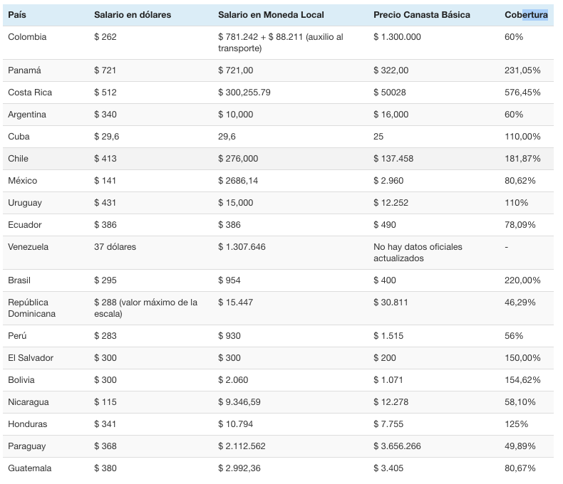 Anteriormente, México promediaba la tabla de posiciones, tomando en cuenta el Índice de Desarrollo Humano del Programa de las Naciones Unidas para el Desarrollo (PNUD), en el análisis “Déficit del salario mínimo” que refleja los mejores salarios mínimos de América Latina.