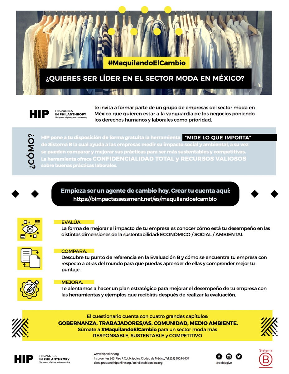 Con el objetivo de ayudar a que las empresas en el sector de la moda puedan aprender lo necesario para construir un mejor negocio en materia social y ambiental, Hispanics in Philanthropy, aliado de Fundación C&A, creó junto con Sistema B la herramienta “Mide Lo Que Importa”, la cual estará disponible de manera gratuita hasta el 30 de septiembre.