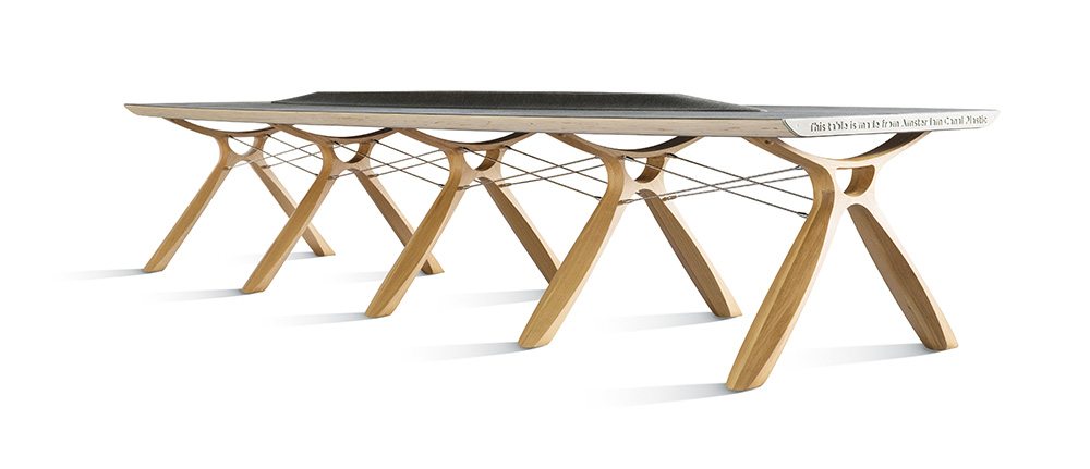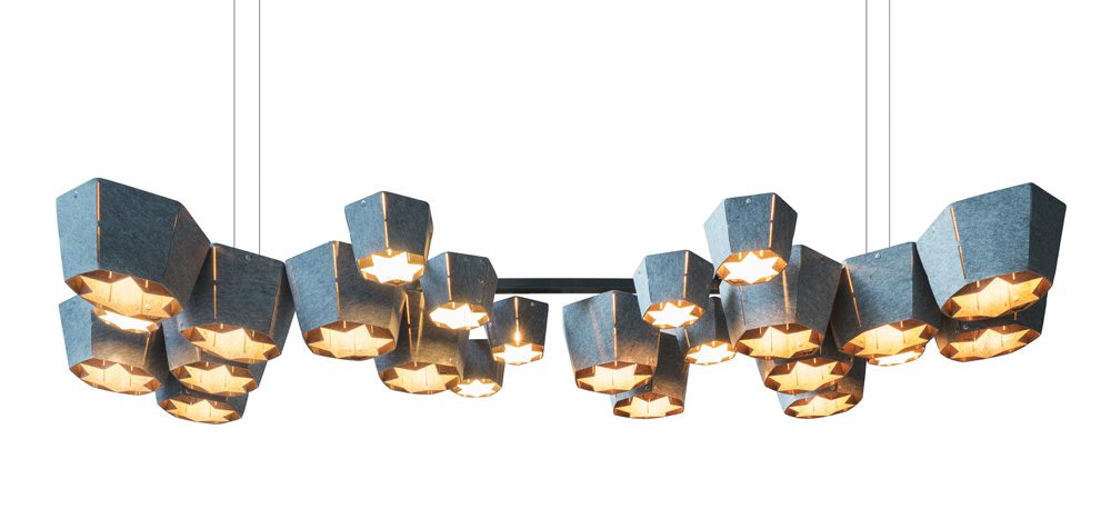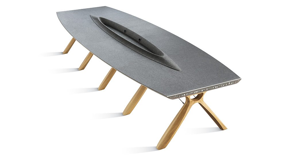 “Desmontaremos los muebles para que las piezas individuales puedan reutilizarse o reciclarse. La colección se compone de una mesa de reuniones, una silla, lámparas y paneles de pared acústicos, con componentes de diseño inspirados en la ballena por la que la colección debe su nombre”.
