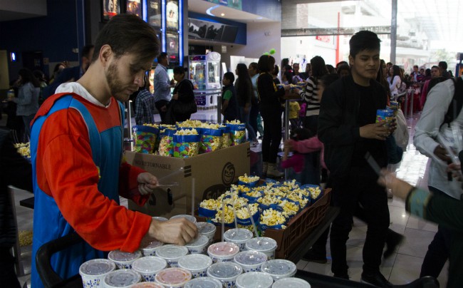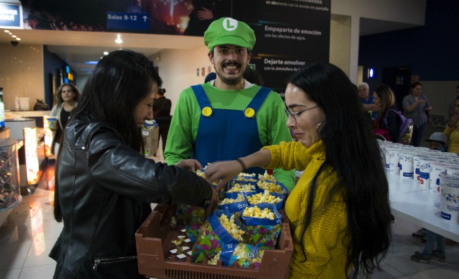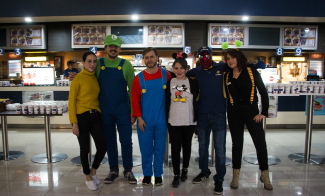 Un poco desmañanados pero con mucho ánimo, los voluntarios apoyaron a los miembros del staff a servir los refrescos y preparar las palomitas que darían a los invitados. Algunos de ellos se disfrazaron de personajes animados famosos como la princesa Fiona de Shrek, Spiderman, Mario y Luigi para esperar a los pequeños y sorprenderlos.