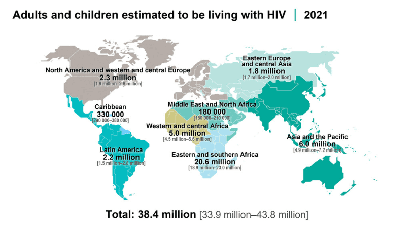 A nivel mundial, la cantidad de nuevas infecciones disminuyó solo un 3.6% entre 2020 y 2021, por lo que se trata de la disminución anual más pequeña desde 2016. Por otro lado, las regiones de Europa del Este, Asia central, Medio Oriente, África del Norte y América Latina han presentado aumentos en las infecciones anuales por el VIH durante varios años. La escalada de infecciones en estas regiones es alarmante.