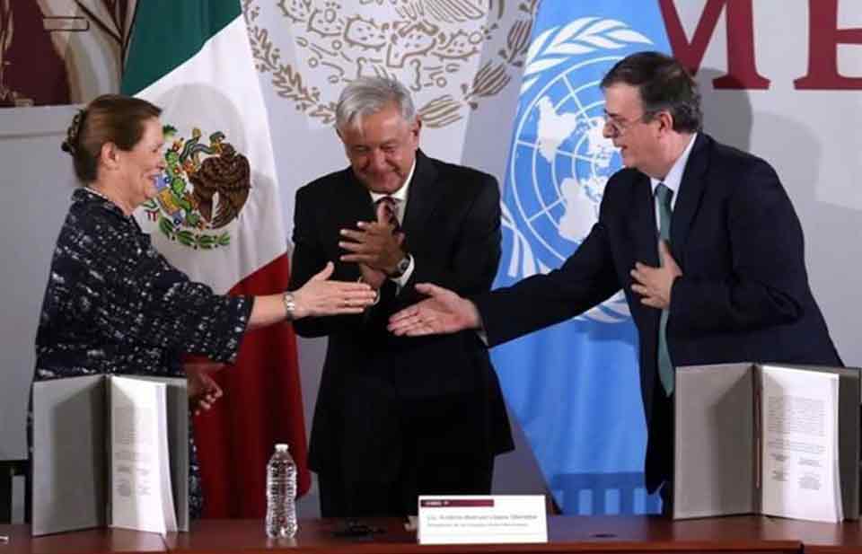 Se firmó el Acuerdo Marco entre el @GobiernoMX y la Oficina de las Naciones Unidas de Servicios para Proyectos, @UNOPS. Firmaron por México el canciller @m_ebrard y por la #UNOPS la Dra. Grete Faremo, secretaria general adjunta de la #ONU. #MéxicoYNacionesUnidas #MéxicoGlobal pic.twitter.com/4VTdCF8Z3Q