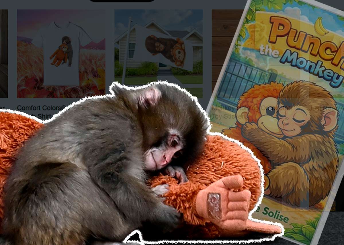 El caso de Punch también expuso cómo funciona la economía emocional en la era digital. Cuando su historia alcanzó notoriedad global, comenzaron a aparecer productos inspirados en el pequeño macaco en plataformas de comercio electrónico como Etsy: juguetes, camisetas, libros infantiles y mercancía personalizada basada en su imagen y narrativa.