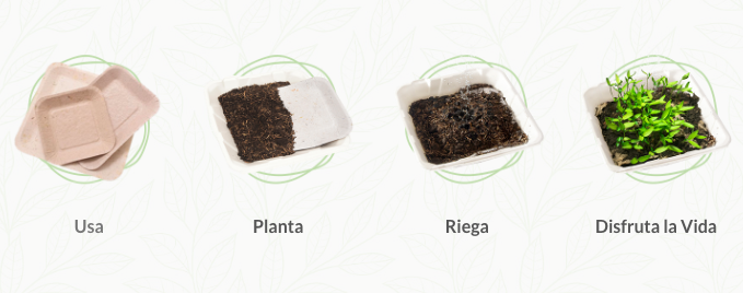 “Es 100% Compostable capaz de germinar en una planta en 8 días. Es un material único, higiénico, soporta la humedad y el calor de alimentos.