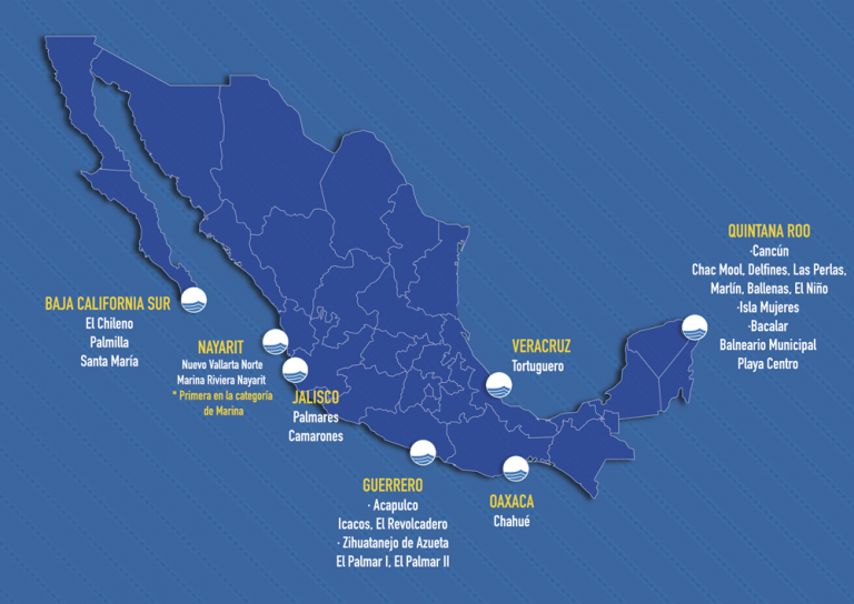 Son 53 costas y dos marinas las que tienen el distintivo, lo cual permitió que México se posicionara en el primer lugar en el continente americano con el mayor número de playas sustentables en América.