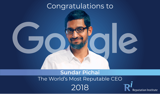 El CEO de Google, Sundar Pichai, el CEO más reputado del mundo en 2018 apoya a la inmigración, un problema que afecta a la fuerza laboral, la adquisición de talento y la cultura de su empresa.