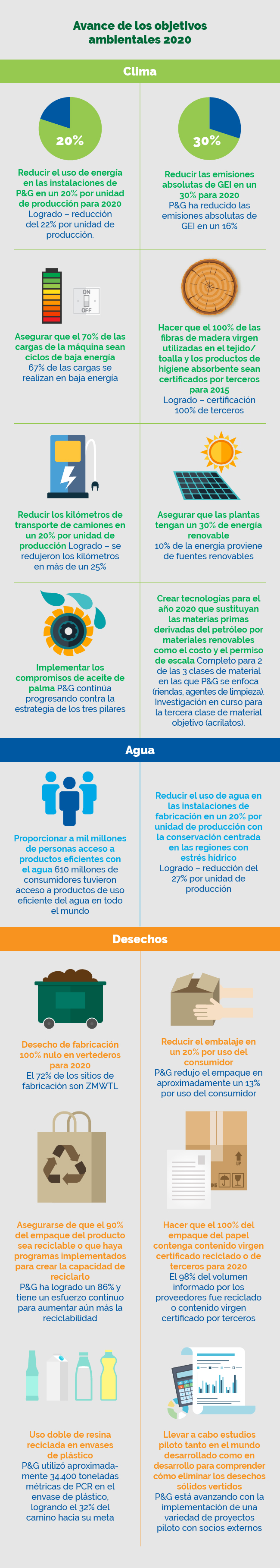 P&G, líder en sustentabilidad corporativa, anunció que ha alcanzado muchos de sus objetivos de sostenibilidad ambiental para 2020, cuenta con planes para cumplir con el resto y ha establecido nuevas metas de amplio alcance para 2030. Con “Ambition 2030“, la empresa quiere inspirar un impacto positivo en el medio ambiente y la sociedad mientras crea valor para el negocio y los consumidores.