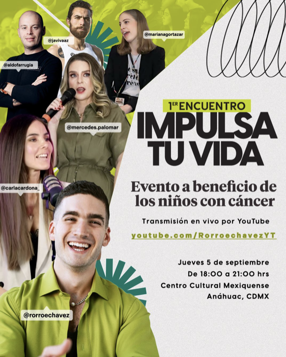 El próximo 5 de septiembre seré parte del Primer Encuentro “Impulsa Tu Vida” una iniciativa que reúne a diferentes conferencistas con el propósito de ayudar a niños y niñas con cáncer del Hospital Infantil Teletón de Oncología.