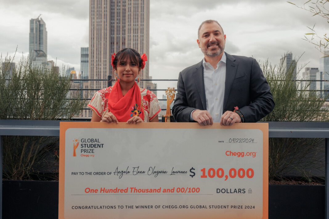 Ángela Elena Olazarán Laureano, una estudiante mexicana de 17 años que desarrolló un asistente médico virtual impulsado por IA y que aboga porque más niñas sigan carreras STEM en México y la región, ha sido nombrada ganadora del premio Chegg.org Global Student Prize 2024. Cada año, este premio de 100.000 dólares se concede a un estudiante excepcional que haya tenido un impacto real en el aprendizaje, en la vida de sus compañeros y en la sociedad en general. Ángela fue seleccionada entre más de 11.000 candidaturas y solicitudes de 176 países de todo el mundo. Ángela recibió el premio en Nueva York durante la semana de la Asamblea General de las Naciones Unidas.