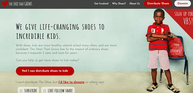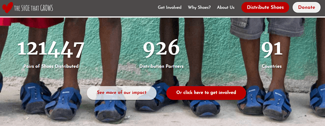 The Shoe That Grows trabaja con organizaciones sin fines de lucro, iglesias, escuelas e individuos para llevar zapatos a los niños que viven en la pobreza.