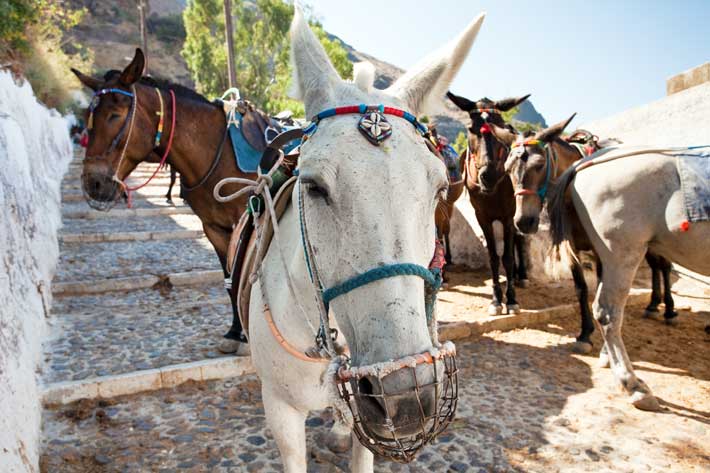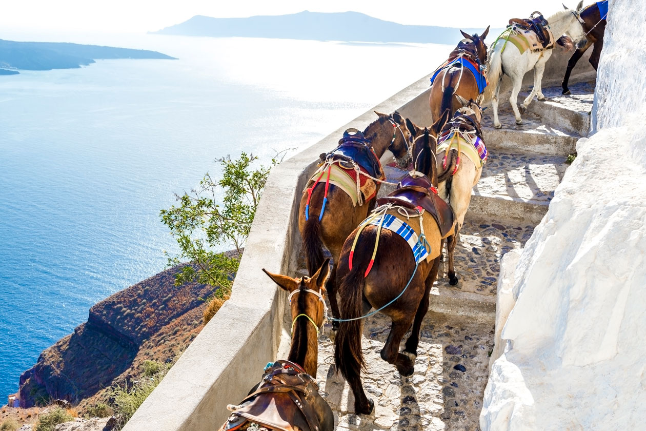 En Grecia, por ejemplo, asisten más de 26 millones de turistas, de los cuales, varios de ellos montan un burro para pasear por el archipiélago de Santorini.