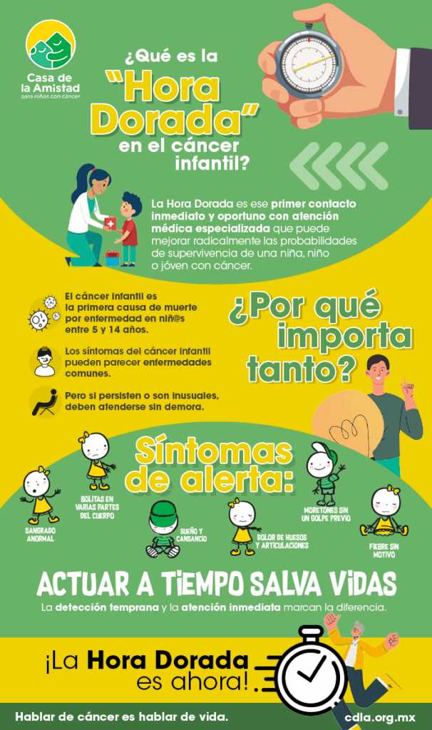 La Hora Dorada es ese primer contacto inmediato y oportuno con atención médica especializada que puede mejorar radicalmente las probabilidades de supervivencia de una niña, niño o jóvenes con cáncer.