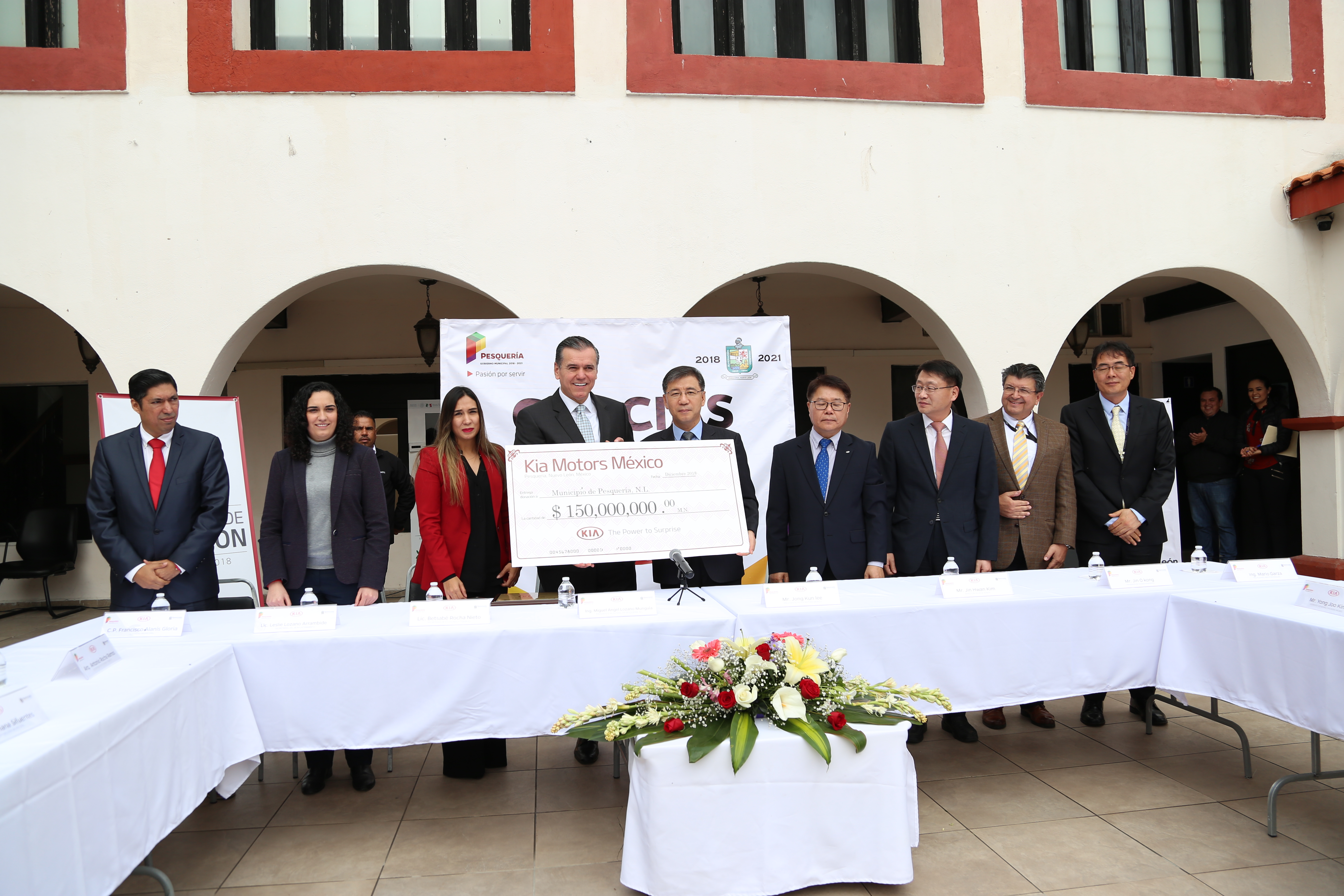 Esta donación será destinada para el desarrollo de la infraestructura pública en este municipio, así como seguir cumpliendo con el contrato de colaboración entre KIA Motors, el Gobierno del estado de Nuevo León y el municipio de Pesquería.