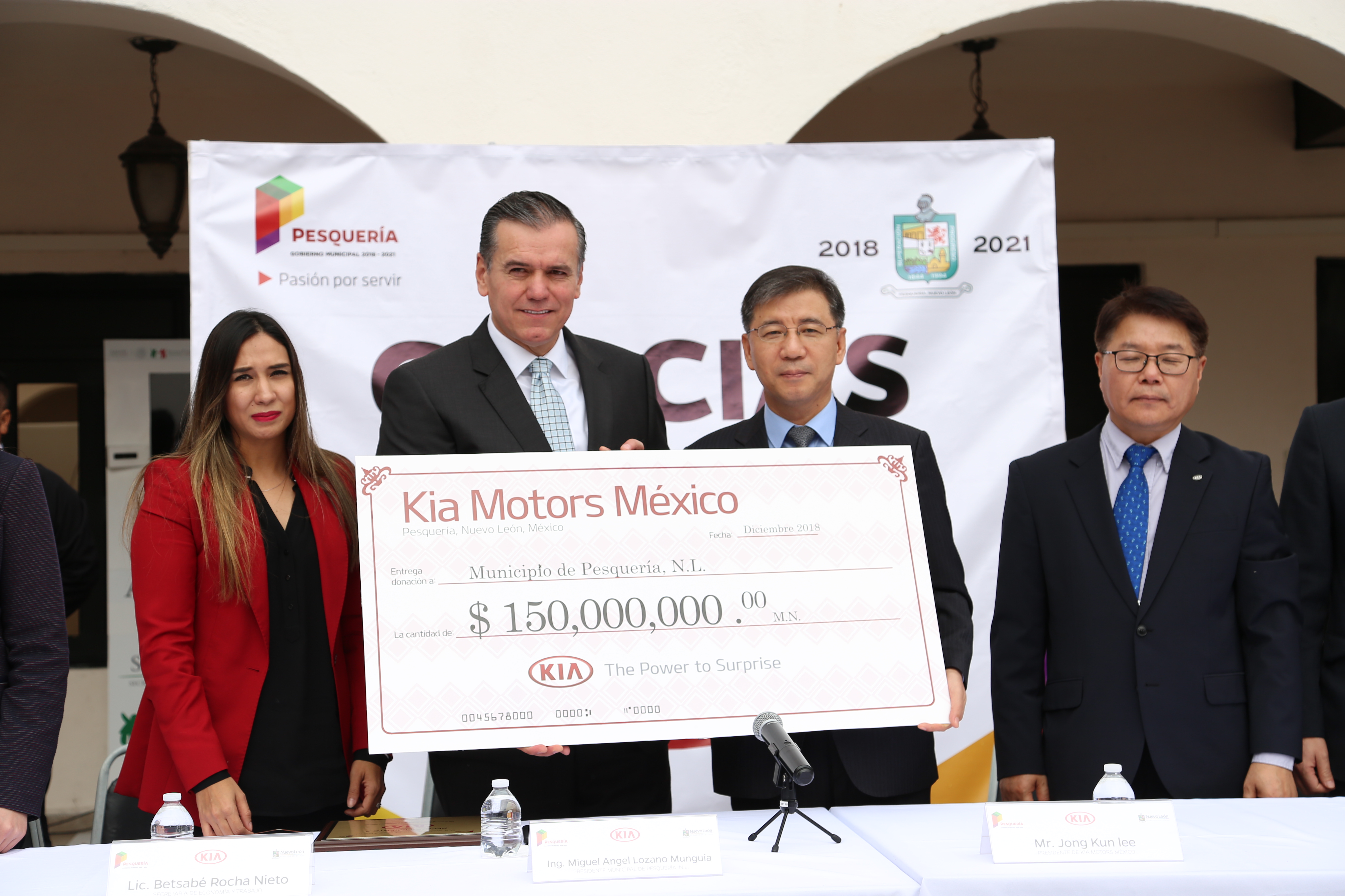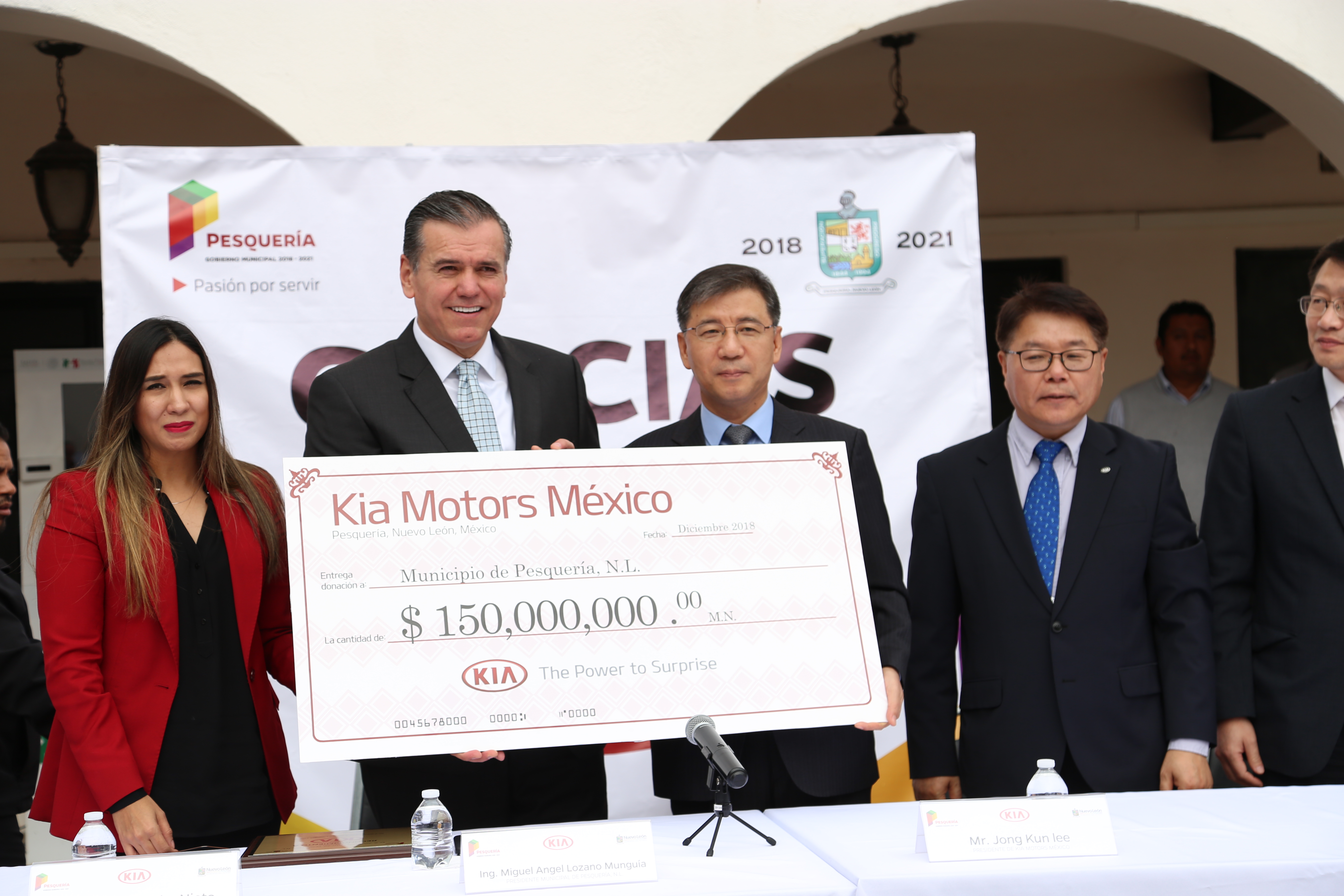 Una de las más recientes iniciativas de KIA, realizada con el objetivo de seguir apoyando al desarrollo regional en Nuevo León, fue una donación al Municipio de Pesquería de 150 millones de pesos.