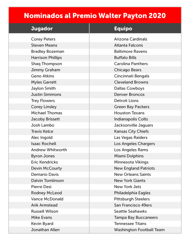¿Te gustaría conocer más sobre este galardón y saber quiénes son los nominados al Premio Walter Payton 2020? ¡No dejes de leer!