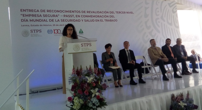 La Secretaría del Trabajo y Previsión Social (STPS) entregó 57 reconocmientos de revalidación del tercer nivel de Empresa Segura del Programa de Autogestión en Seguridad y Salud en el Trabajo (PASST), en el marco del Día Mundial de la Seguridad y Salud en el Trabajo.