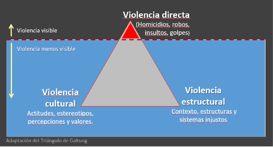 Para construir una paz duradera o Paz positiva, es necesario atender las causas raíz de la violencia directa. Esto significa desactivar otros tipos de violencia, más profundos, y por lo tanto menos visibles.