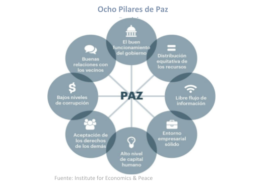 En el Instituto para la Economía y la Paz nos dedicamos, desde hace 12 años a nivel global y desde hace cinco en México, a cambiar la conversación pública hacia un enfoque de paz positiva. Así, a partir del análisis de muchos y muy diversos casos alrededor del mundo, proponemos Ocho Pilares de Paz Positiva que representan los factores que la impulsan en el largo plazo y ayudan a mantenerla.