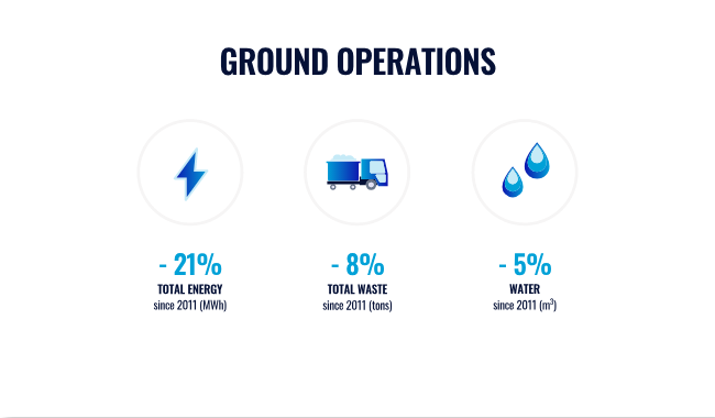 El Reporte de Responsabilidad Social Corporativa de Air France-KLM 2017 enlista varias acciones que se llevan a cabo a bordo del avión y que responden al ODS 12 “Producción y Consumo Responsables”.