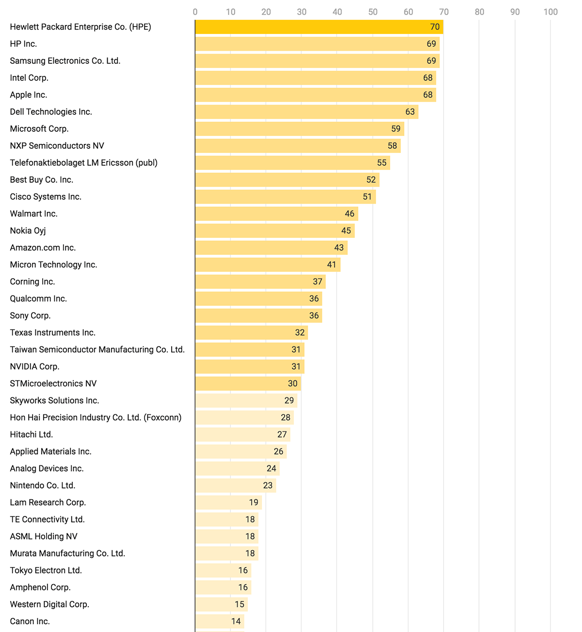 De acuerdo con el portal Edie.net, en un nuevo análisis de cómo las 49 empresas de TIC más grandes del mundo están protegiendo los derechos humanos en sus cadenas de suministro, el puntaje promedio es de apenas 30%.