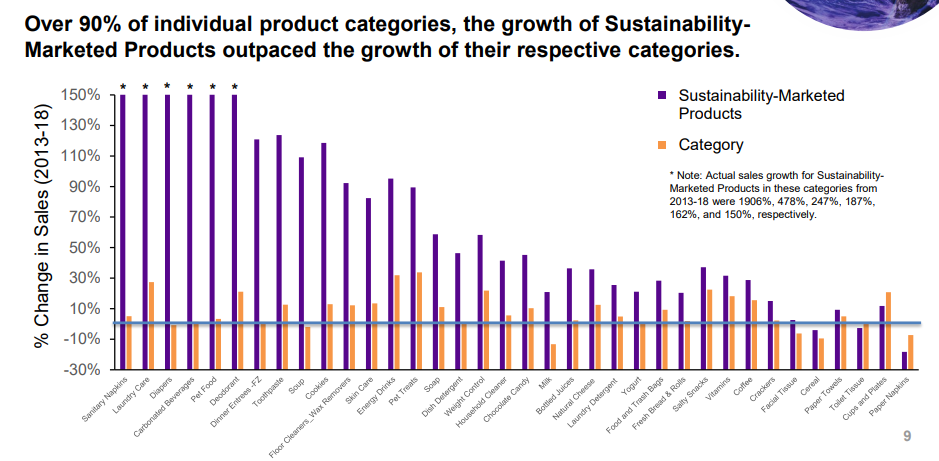 Los productos sostenibles están impulsando no solo el crecimiento de los productos sino también el crecimiento total de la categoría / mercado.