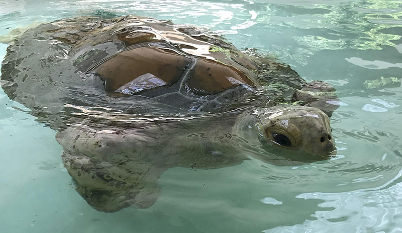 Esperanza es la estrella del hospital, una sobreviviente de un ataque en zona protegida. Su tratamiento ha llevado ya unos 10 años y se sabe que nunca podrá volver al mar; pero Xcaret sigue al pie del cañón hasta verla recuperada por completo… y es una estrella sumamente consentida.
