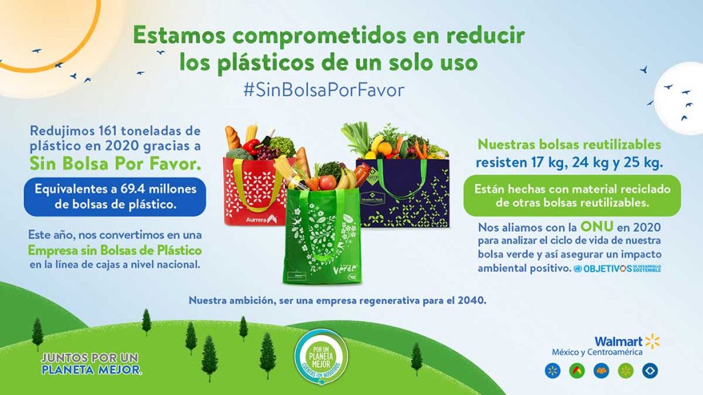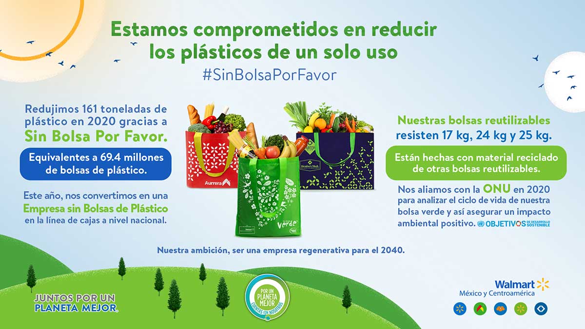 Crearon la campaña #SinBolsaPorFavor, que involucra la operación de sus tiendas, clubes y centros de distribución y con la que, en 2020, redujeron 161 toneladas el plástico utilizado, y a partir de enero de 2021, son una Empresa Sin Bolsa en sus líneas de caja a nivel nacional.