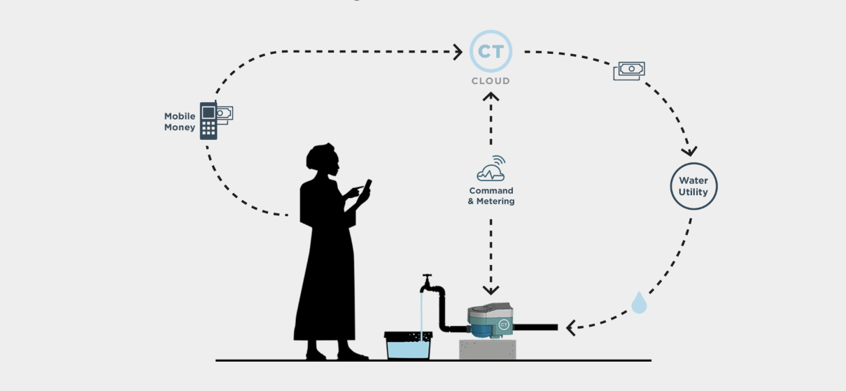 La gente que tenga en su casa un medidor de la compañía, puede comprar agua con cualquier celular que tenga por medio de una app, a la cual deben abonar crédito. Al recibir el pago, el software CTCloud envía la información al CTMeter y este automáticamente empieza a proveer agua limpia.