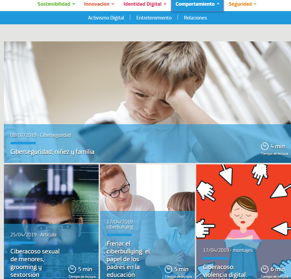 En el apartado “Identidad digital”, se encuentra contenido enfocado en generar una identidad segura mientras se navega en Internet, y así crear un espacio seguro.