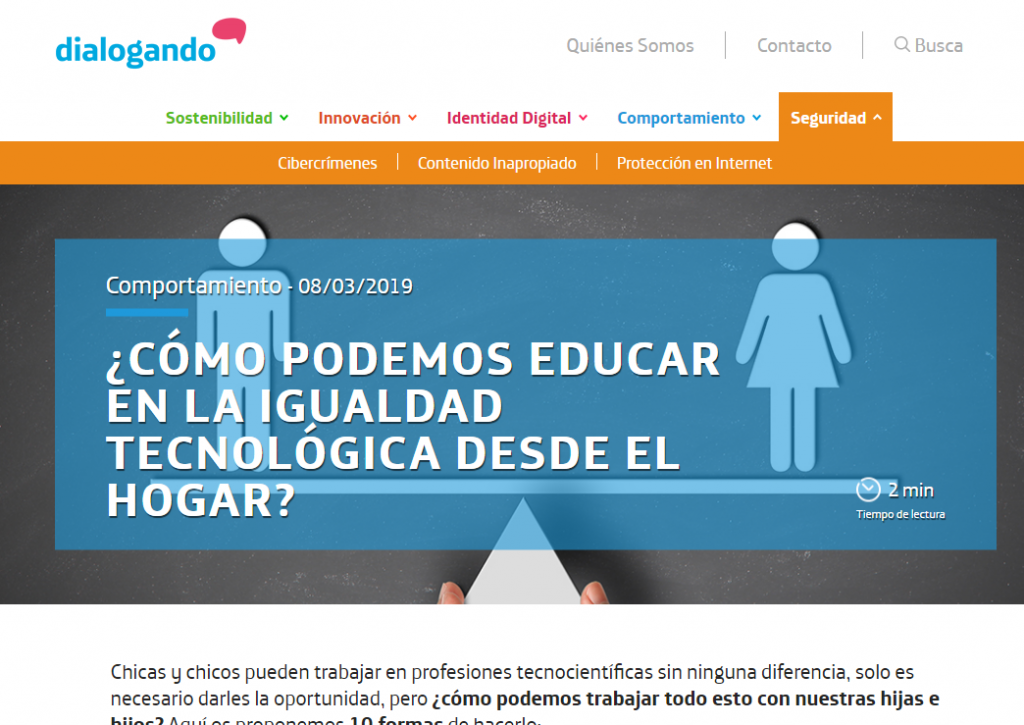 “En Telefónica estamos comprometidos con el uso responsable de las tecnologías conectadas. Por ello, y con el objetivo de fomentar un entorno seguro en Internet así como concientizar a la sociedad sobre la importancia de aprender a sacar el máximo provecho de estas herramientas en nuestro día a día, hemos desarrollado el portal web Dialogando”, comparten.