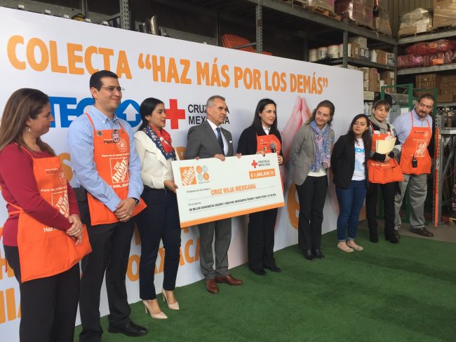 “Nos llena de satisfacción ser un canal de ayuda y poner nuestra infraestructura al servicio de las causas y personas más necesitadas de nuestro país, en esta ocasión a través de la Colecta “Haz más por los demás”, para seguir apoyando a la recuperación de las comunidades afectadas por los sismos vividos el año pasado”, declaró Érika Díaz, Directora Senior de Mercadotecnia, Venta en Línea y Relaciones Públicas de The Home Depot México.