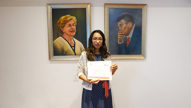 Karla Alejandra Gómez Romero, ganadora de la 2da Beca José Ortega Romero y Teresa Martínez de Ortega.