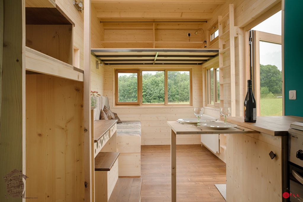 Afuera del Cecile de 6 metros de largo y 2,55 metros de ancho está revestido con abeto y policarbonato negro ligero que en realidad imita bastante el revestimiento de metal.