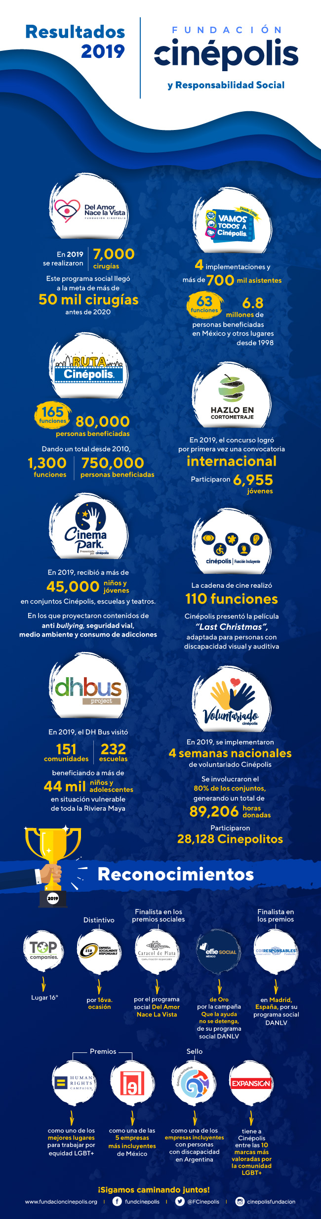 Algunos de los reconocimientos que obtuvo Cinépolis y su fundación en 2019: