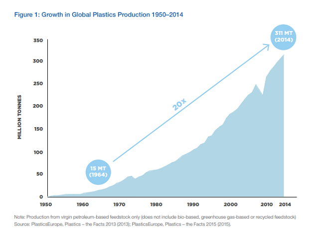 El plástico está en todas partes. Mira el crecimiento de uso global entre 1950 y 2014.