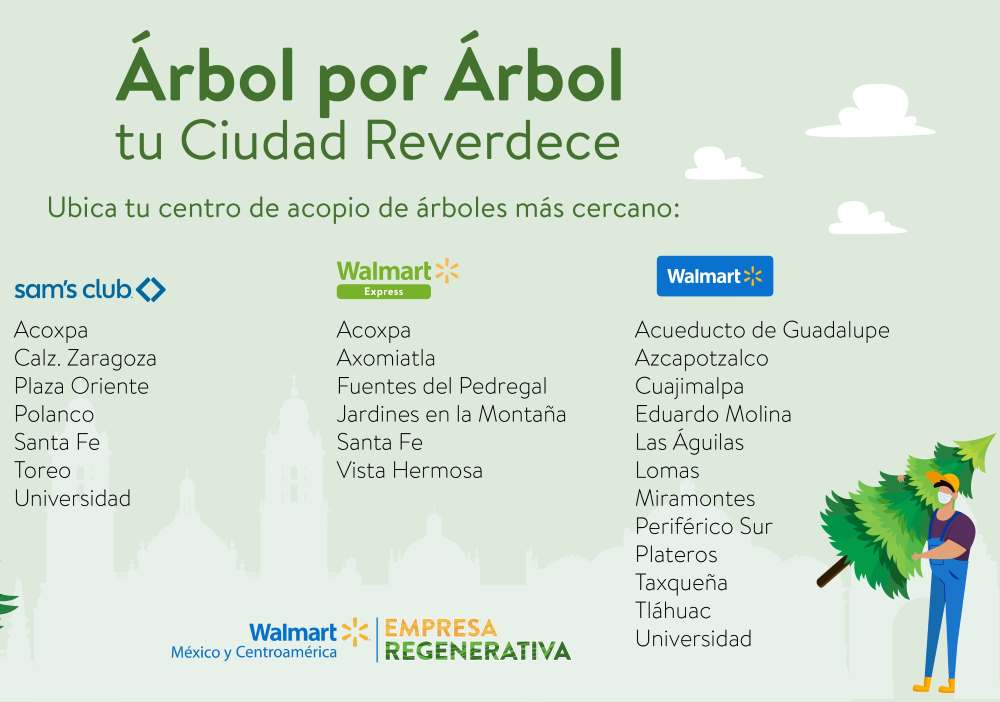 Walmart de México y Centroamérica suma nuevamente esfuerzos con la Dirección de Infraestructura Verde de la Secretaría del Medio Ambiente del Gobierno de la Ciudad de México, para apoyar a la recolección responsable de árboles naturales de Navidad, para su posterior reciclaje.