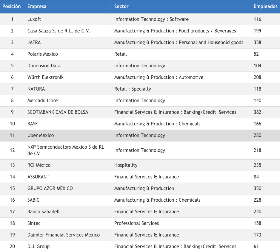 Uber México, Natura, BASF, Mercado Libre… éstas son algunas de las mejores empresas para trabajar en México 2018, en la categoría multinacionales con menos de 500 colaboradores que evalúa por primera ocasión la firma Great Place to Work.