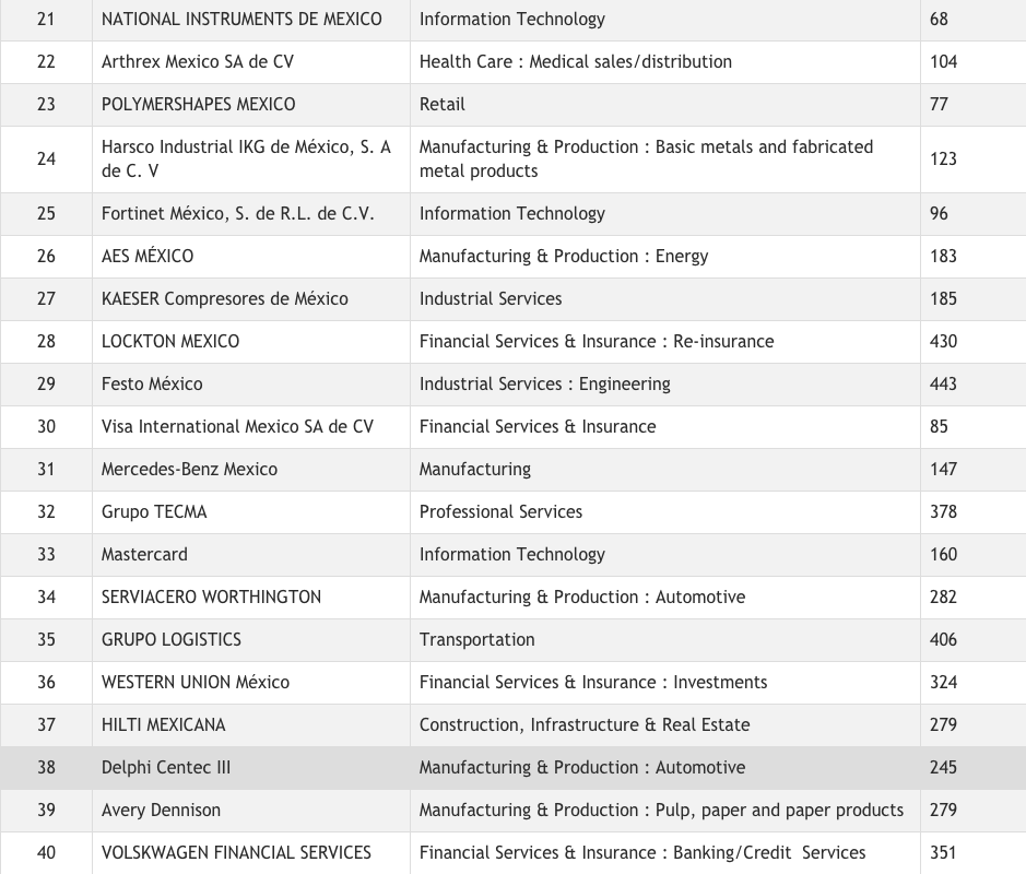 ¿Quieres saber cuáles son las 40 mejores empresas para trabajar en México 2018, en la categoría multinacionales de menos de 500 colaboradores? Echa un vistazo a la lista.